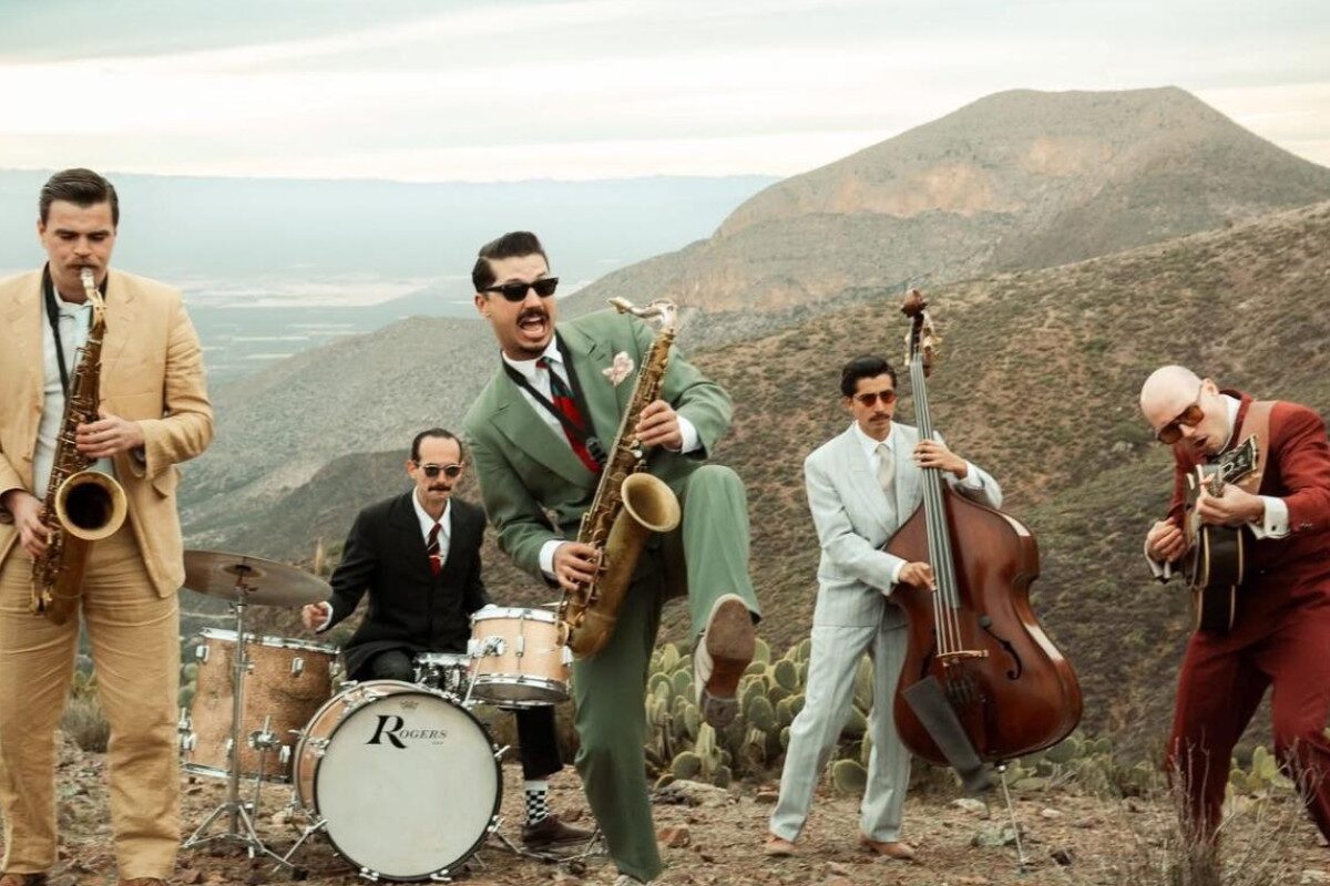The Hi-Stakes features Sam Ghezzi on vocals and tenor saxophone, Frank Groenendijk on tenor saxophone, Linus Eppinger on guitar, César Puente on upright bass and Joe Korach on drums.